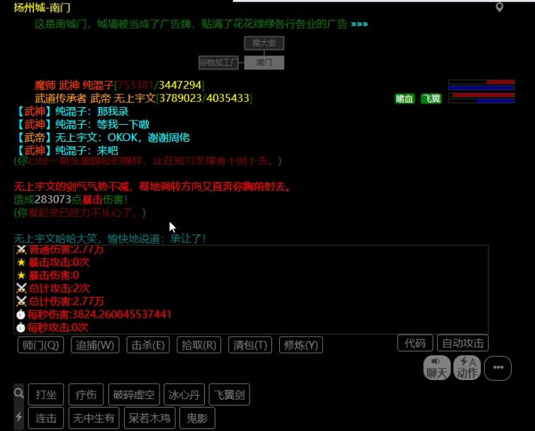 这个时候我们就惊奇的发现他还能吃到我们的毒手buff然后他死了,但是却没有显示他死了,这个方法看不到尸体,这时候对面会发现还动不了,因为他死了,这个时候对面只要刷新一下就能发现自己死了,然后有意思的地方来了,我们可以对NPC这样做,虽然没有显示毒杀,但是