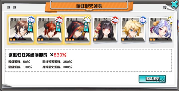 亲爱的御史大人,欢迎来到夏侯中学~\(≧▽≦)/~,这里是夜部~!最近,夜部的御史越来越多了,各个御史之间的关系...也变得愈发复杂【叹气。那么,你心仪的御史是什么性格?御史之间,又有哪些花边新闻~?御妹这就手把手教你玩转【御史羁绊】!(本攻略由王牌御史手游官方团队运营哥哥独家出品)【御史羁绊攻略】★参加派驻任务,就可以提升派驻御史之间的好感度★使用道具时光之尘,可立即完成派驻就是