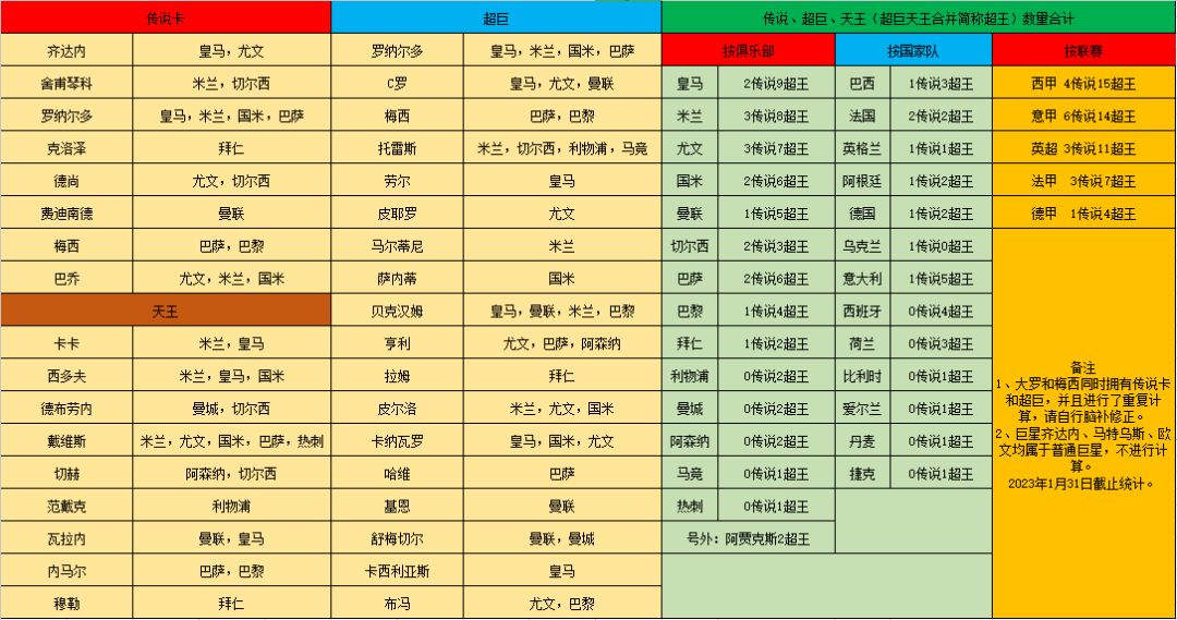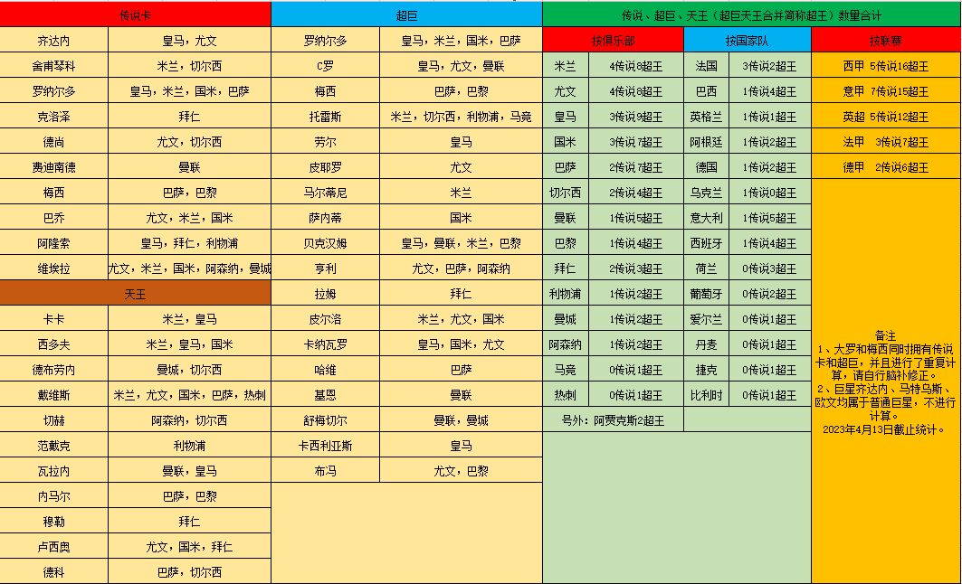 2023.4月游戏传说天王超巨球员统计(实时更新)