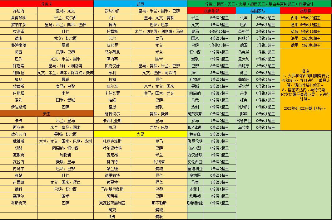 各俱乐部/国家队球员数量统计【11.1日】