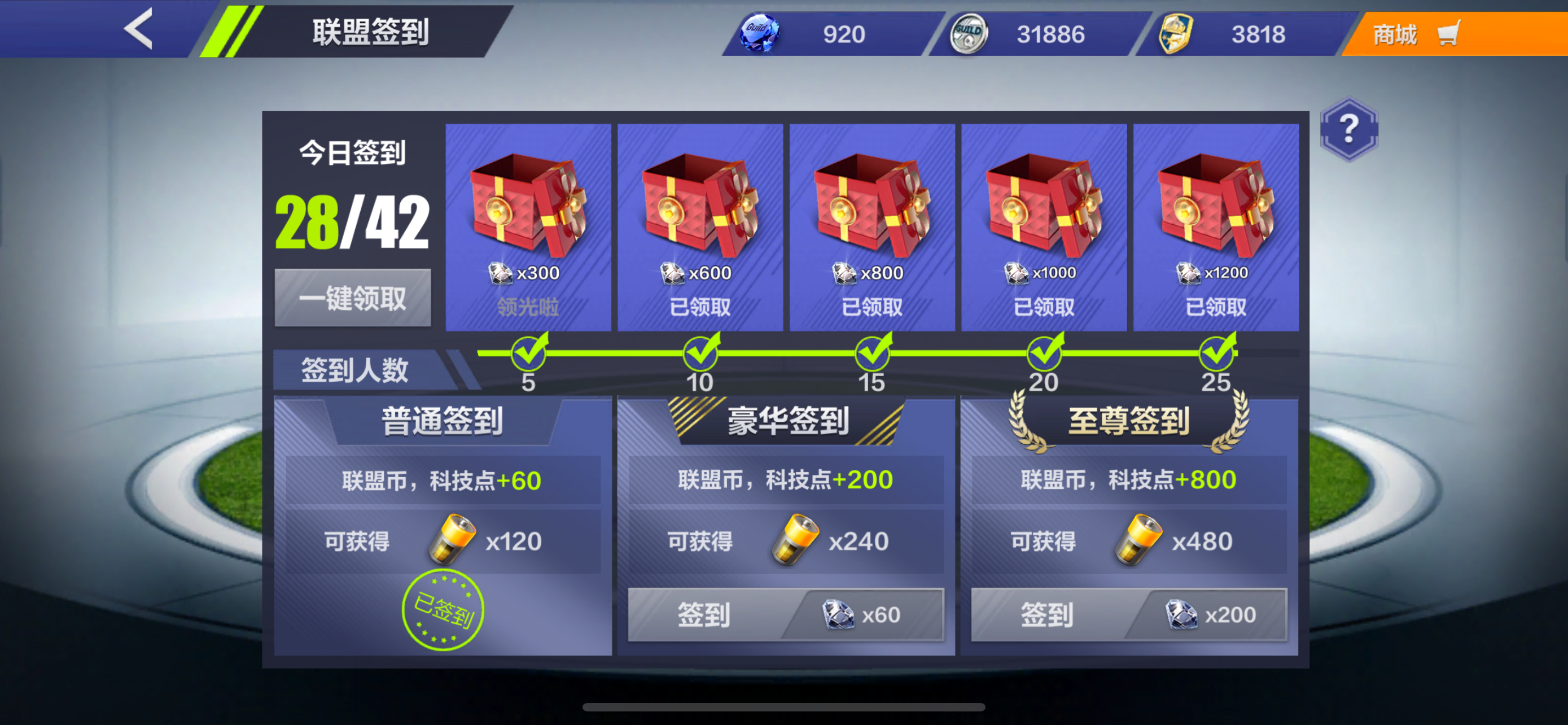 个人觉得,那种每天签到人数百分之九十,或百分之百的联盟,应该有更多的资源,这个钻石签到估计再富的富豪也会点普通,而且整个联盟每天30,40个人签到,也最多只有100左右的钻石,现在联盟收菜的大佬每天就只是报名点一点,每日打卡盒子点一点,签到点不点都无所谓了然后“联盟科技捐献”这个除了新区盟,稍微玩儿久一点的活跃盟,估计早就满了,提升不大,而且金币也给很少,最多就是用来刷活动任务的