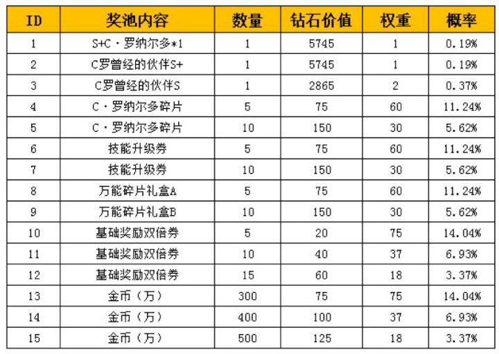 各位亲爱的教练:《全民冠军足球》对游戏随机玩法中物品产出概率公布如下:幸运转盘活动概率公示如下:小幸运礼盒概率公示如下: