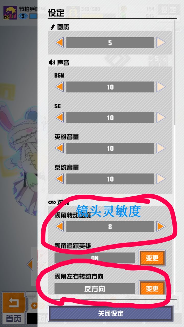 如图,上方的红圈是灵敏度,如果你们觉得视角难转,就调这个。下方的红圈是镜头位置,默认的是左划为向右看,右划向左看。屏幕向下划是180°转身。关于动作延迟,因为是动作捕捉,贴近实际。关于跑职蓄力视角压缩,是为了游戏公平性,有了更快的速度就必须有所损失。设置在右上角。