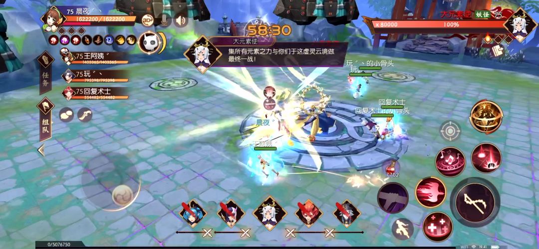 进图第一个机制在中间出红圈,站着吃。第二个机制右手边出小红圈,要躲。第三个机制左手边出小红圈,要吃。最后中间出大红圈,要躲。一直循环打。PS:黄色小点是玩家。