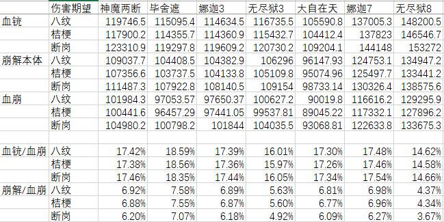 泼凉水的意思不是说这套有多垃圾,只是不会产生特别高的收益而已,事实上,血铳转血崩伤害基本持平,崩解转血崩,对以技能为主的职业略有提升(提升点为冷却时间收益)补充一个注意点: 如果对于单boss关卡,实际上一个队伍只有一个崩解特效收益,如果固定队里已经有了崩解,就不怎么建议血铳转血崩了这次改动的加成位置可以看出来策划可能想允许这种2+2的形式存在,所以血铳的增益大部分都放在了两件套里而不是三件套