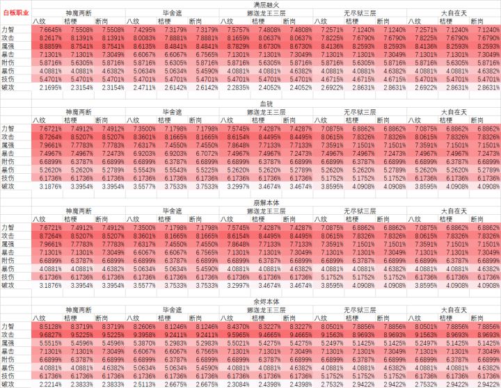 其实都是些广泛流传的结论,但是在这里统一拉表定量了一下,仅供参考。首先说明前提:背景依然是地藏老三,职业为中庸的咒师,因为是以毕业时的选择为目标的,所以装备选择为:15武器,14首饰,13左右槽(左右槽问题是我个人因素,不想上14了),首饰左右槽影响不很大。默认背景为,天草防具套,地藏首饰套白板(没有别的套装效果,只算一个8%附伤),左暮阳右断岗——为什么不用别的右槽,因为变量太多拉表太累,