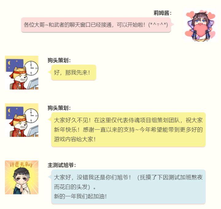 武者大大好明天就要“开工”啦~莉姆酱今天要“输送”的内容满满不仅有项目组诚挚送上的感恩寄语还有来自资深玩家的新年打油诗最后还有“开工大礼包”可以领取下面一起来看看叭~侍魂项目组寄语新年打油诗 胧 贺 新 禧 【作者】无忌起飞啦(零川3服)金牛贺喜报春到,幸运达摩好运连;武者大大争相竞,为升属性尽钻研;精心筹备福利赠,助攻副本buff添;同看侍魂宏图展,明朝可待