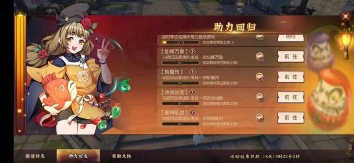武者大大们好~经过一个春节假期后莉姆酱の情报站正式再次开启营业(*^▽^*)新的一年第一弹爆料密探•莉姆酱立马奉上一定要看到最后哦~回流活动即将开启本次回流活动,增加了助力任务,使得获取积分更加简单,推荐大号参与,和回归玩家组队拿大量强化券以及坐骑材料等!(以游戏内实际活动为准)1. 在2月10日6:00至2月16日6:00没登录的账号可获得回流资格。2. 回流活动为2月24