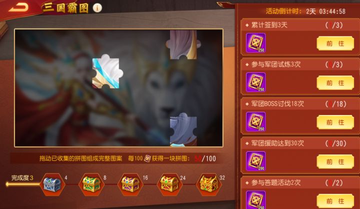 【登录送好礼】活动时间:6月1日0:00-6月8日24:00参与条件:开服时间≥1天6年美好时光,感恩主公相伴。小乔也为各位主公准备好了迎接好礼哦。活动期间,主公只要每日累计登录即可领取各种丰富的奖励,幸运元宝福袋、幸运道具福袋、还有各种道具任选箱,累计登录第5天还有金将任选箱领取。 【三国霸图活动】活动时间:5月31日0:00-6月3日24:00参与条件:开服时间≥40天且等级≥7
