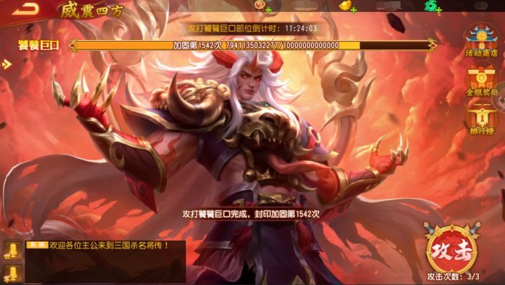 【威震四方活动】活动时间:2月13日10:00-2月17日22:00活动范围:开服时间>8天【第一阶段】时间:2月13日10:00-2月15日22:00南蛮十万大山骚动不断,上古凶兽藏匿其中;各路英雄豪杰集结而至,镇压四方。饕餮身形巨大,凶神恶煞,势不可挡,唯有分而击之。主公需先将其部位各个击破,方可破其威势、攻其命门。【职业选择】选择兵家职业的主公,可通过挑战活动关卡获取法宝赤焚