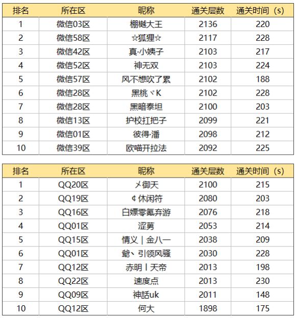 S12赛季单人阿比斯魔境排行榜活动的前十名单如下:恭喜以上探索者摘得“S12十大高手”的称号!