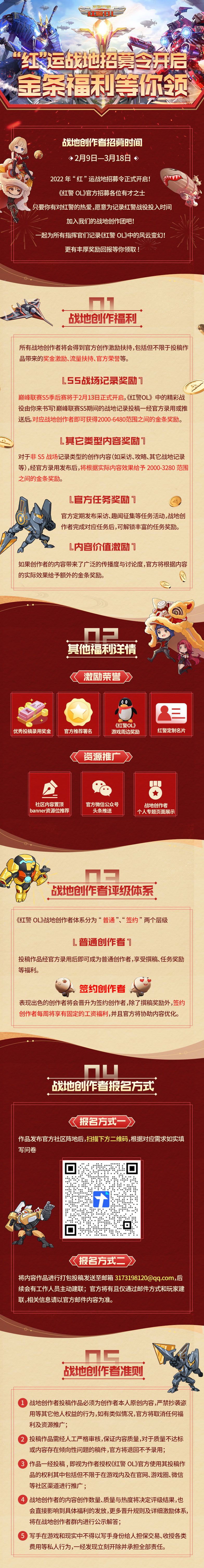 亲爱的指挥官们,美好温馨的春节假期已经结束,充实忙碌的生活正式回归,祝指挥官们新春开工大吉,财源滚滚!此外巅峰联赛S5季后赛第一轮将于2月13日正式开启,经过假期的休整相信指挥官们一定能再创佳绩! 小组赛期间我们收到了多篇优质投稿,得到了指挥官们的好评,小雅对指挥官们的创作能力佩服不已。为了今后更好地记录战场内外的精彩时刻,”红“运战地招募令开启正式开启,全新创作激励福利体系,将为各位指挥官地创作
