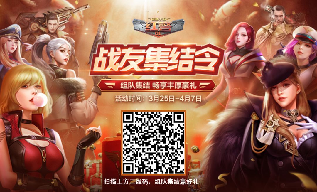 征程再起,热血重燃! 今天小雅为指挥官们带来全新《红警OL》集结组队活动!即日起至4月7日,指挥官们参与活动组建战队、召集老战友、完成每日战队任务,都可获得丰厚的奖励。 恰逢巅峰联赛S5总决赛开战在即,呼唤战友重回荣耀战场,更待何时!快扫描下方二维码,即可参与组队领奖,助阵S5决赛! (手Q用户可分享页面至手Q环境打开) 01组队集结,全员领奖 指挥官们可在活动页面创建自己的战队,邀请好友入队。也