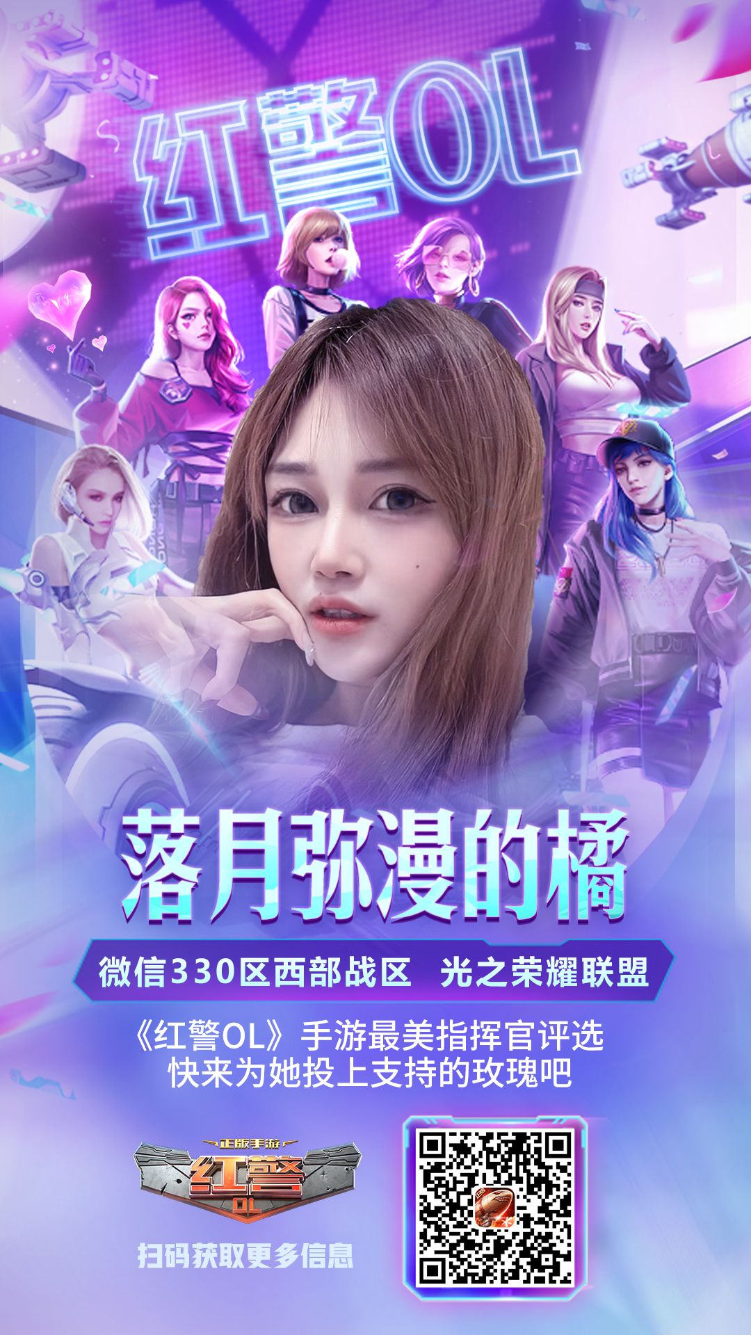 “最美指挥官”突围赛将在今晚12点结束 小雅踩着小尾巴 给各位指挥官带来最后一波福利啦~ 快来认识今天的最美女神吧! 落月弥漫的橘 游戏ID“落月弥漫的橘”,来自于微信330区的“光之荣耀”联盟。是一名射手座的广东小姐姐,喜欢唱歌、逛街、玩游戏~ 宣言:可甜可咸可温柔,可强可软可霸道,可冷可拽可嚣张 帝王灬发财 游戏ID“帝王灬发财”,来自于微信443区的“帝王灬戰”联盟。她是一名陕西小姐姐,喜欢