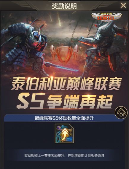 钢铁意志,战火重燃!《红警OL》泰伯利亚巅峰联赛S5赛季报名今日正式开启! S5赛季在沿用往届赛事核心规则的基础上,进一步提高了奖励数量,相比较S4赛事平均增幅达30%。不仅如此,本次赛事特别增加了新版本中的泰能计划相关道具。更丰富的道具奖励,只为犒赏战火中勇猛冲锋的指挥官们! 新的战火已经燃起!各位指挥官不妨集结联盟战友,在这场代表《红警OL》最高战力角逐的赛事中,用胜利创造新的荣耀,登顶联盟霸