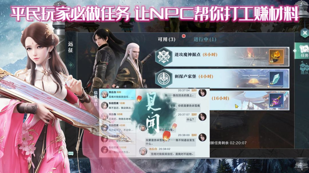 雪鹰领主手游有一个我非常喜欢的设定——见闻任务,你也可以理解为支线任务,每个任务都是一个有血有肉的故事,层层还原了小说中大部分主角和配角的经历和人生。任务不复杂,关键奖励还极其丰厚,奖励是……人,没错,做完任务,NPC就跟你混了。