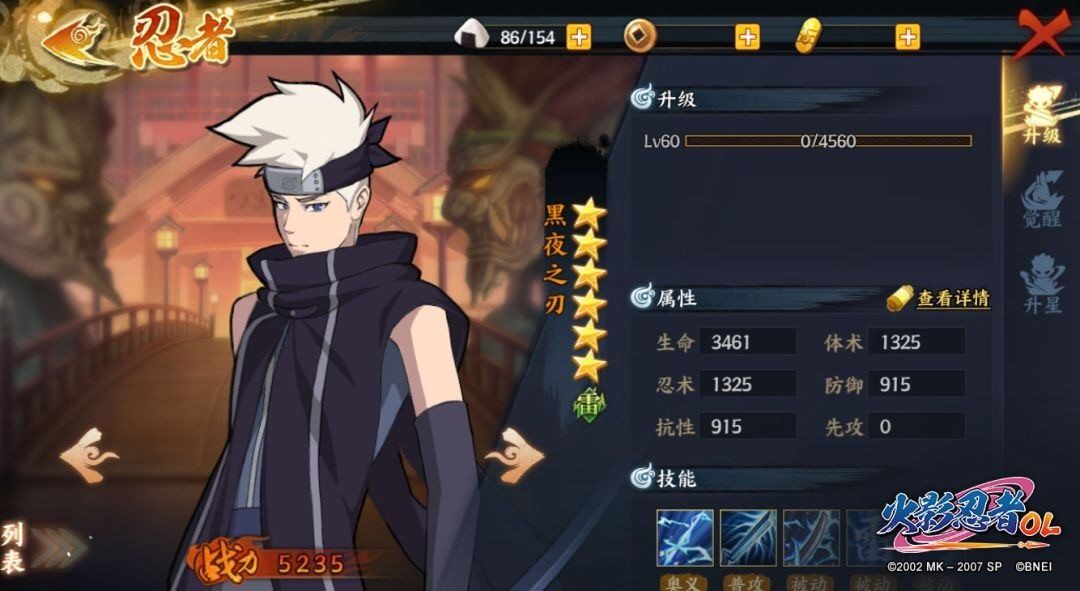 上一次小吉偷瞄策划小姐姐的电脑,美滋滋地爆料出火主的情报。 在被暴打一顿之后,小吉痛定思痛,决定继续我们的情报狂欢! 哇哈哈哈哈~ 谁让我是最爱玩家的小吉(上忍一般的微笑)~ 这一次,小吉带来了呼声很高的带刀帅雷雷:雷主——黑夜之刃~ 但是本次情报并非最终版本哦~ 一切还是以最终不删档的时候为准哈~ 【身份背景】 主要使用雷遁忍术与剑术战斗。是五位新忍者中最为冷峻的一个,喜欢独处、不爱说话、爱财如