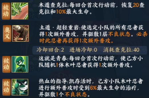 天藏,我,喜欢鸣人,加盾锤人土主,凯,我们喜欢天藏~天藏的加入,使得我们的查克拉更加充沛,可以搭配的战术也多了很多。有很多忍者由于天藏的加入都完善了战术。忍者特色技能分析技能分析:木遁.木锭壁分析:奥义选定小队全体加盾。盾有两层,一个是单体的40%盾一个是全体的20%盾,也就是选定目标有60%的盾。必杀状态下可以连续普攻三次,是天藏唯一的爆发方式。技能分析:木遁查克拉分析:实战中会感