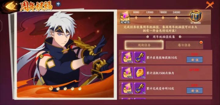 本周,三周年活动持续开放忍者学员们记得前来获取福利同时,新时装也跟大家见面了通过参与三周年活动可获取永久时装!更有流浪商人、忍者商店等活动期待学员们的参与具体内容随龙龙一起来看看吧(前瞻信息非最终游戏内容,一切以正式服更新为准)更新内容新增内容>>>三周年活动福利活动五:周年祝福⭐开启时间:11月19日5点至11月26日5点⭐参与等级:主角等级达到30级⭐完成活动任务积