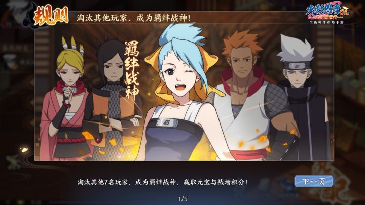 「羁绊」存在于每一位忍者之间鸣人与佐助的羁绊、第七班的羁绊等等正是因为他们彼此深深的羁绊才让火影充满了精彩的故事而在我们的游戏中羁绊也是十分重要的战力提升途径那么问题来了帅吉咋突然正经地聊起羁绊呢?各位学员坐稳了下面帅吉要爆史诗级猛料了!羁绊战场 八人混战游戏即将迎来全新的PVP玩法——羁绊战场!各位稍安勿躁莫激动,帅吉这次又是偷了资料跑出来的,先悄悄跟学员们说明一下基本规