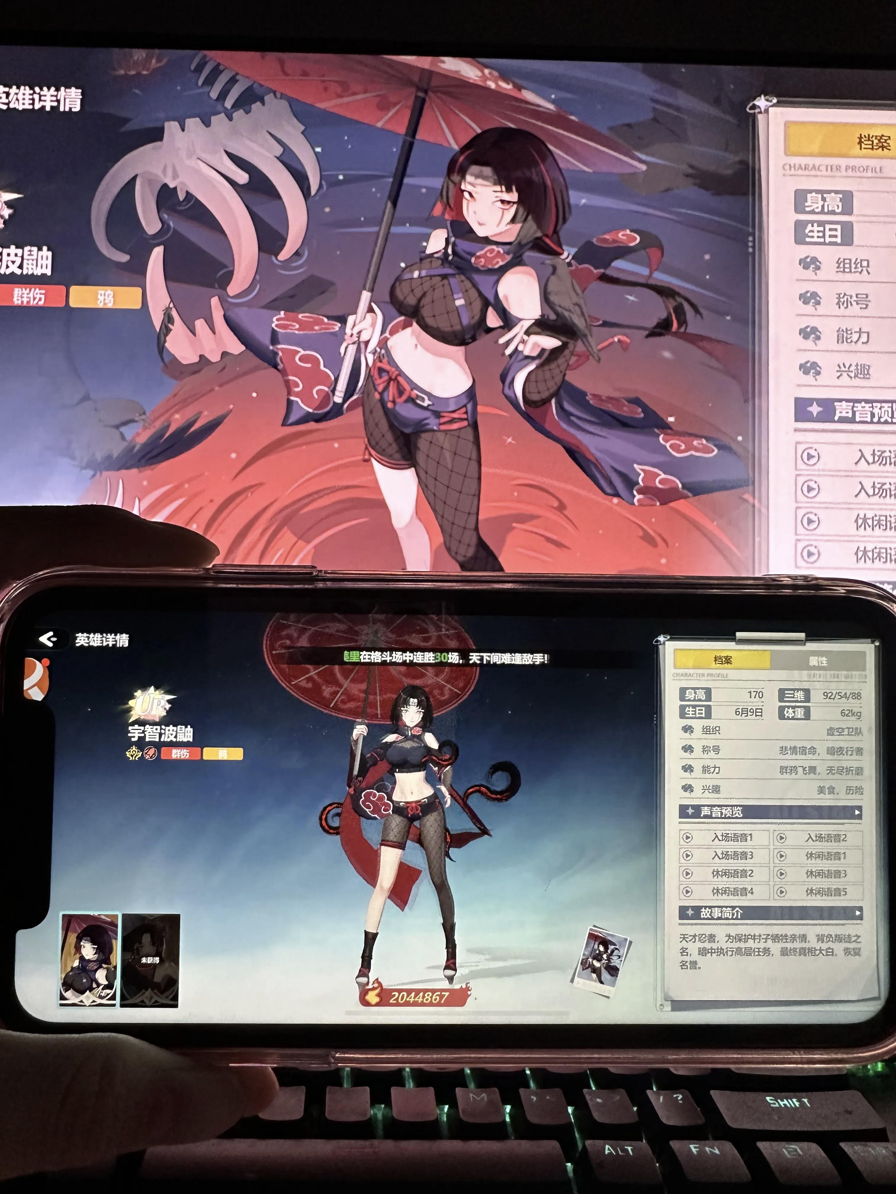 里面包含多部动漫角色诠释女的, #fate #jojo的奇妙冒险 #死亡笔记 #火影忍者 #进击的巨人 等都有玩法有6v6回合制对战 也可以好友匹配对战 有社团 可以给女角色送礼物增加好感,给女角色换时装 场景也很多浴室 卧室 厨房 超市等 并且里面每个角色建模都很精美头发会动 眼睛会眨3d立体的形象可以当壁纸的程度 #二次元 #卡牌游戏 #新游戏 #每一帧都是壁纸 #宇智波鼬