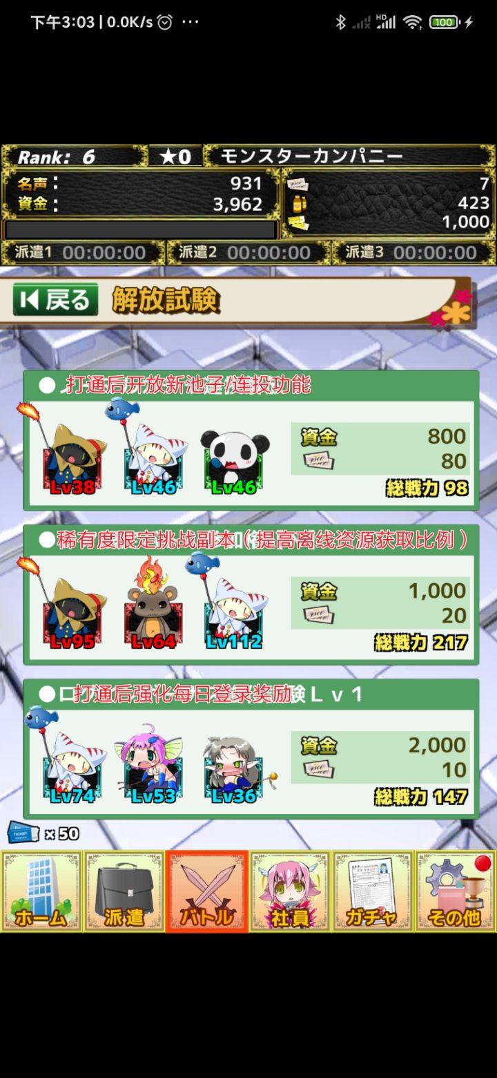 写在最前面:不推荐修改时间,如果非要修改:游戏内的时间必须前进!游戏内的时间必须前进!游戏内的时间必须前进!不能后退。否则会被游戏标记为作弊用户。基础篇:当游戏刚开始的时候,是什么的没有的,请到右下倒数第二个选项里抽卡,抽空后去战斗随缘打(注意左下有写属性相克,克制打150%伤害,被克制打66%伤害),并且有抽卡卷就抽卡。打不过就去派遣里找十秒二十秒的任务赚抽卡卷,然后去抽卡抽空。当你打完1