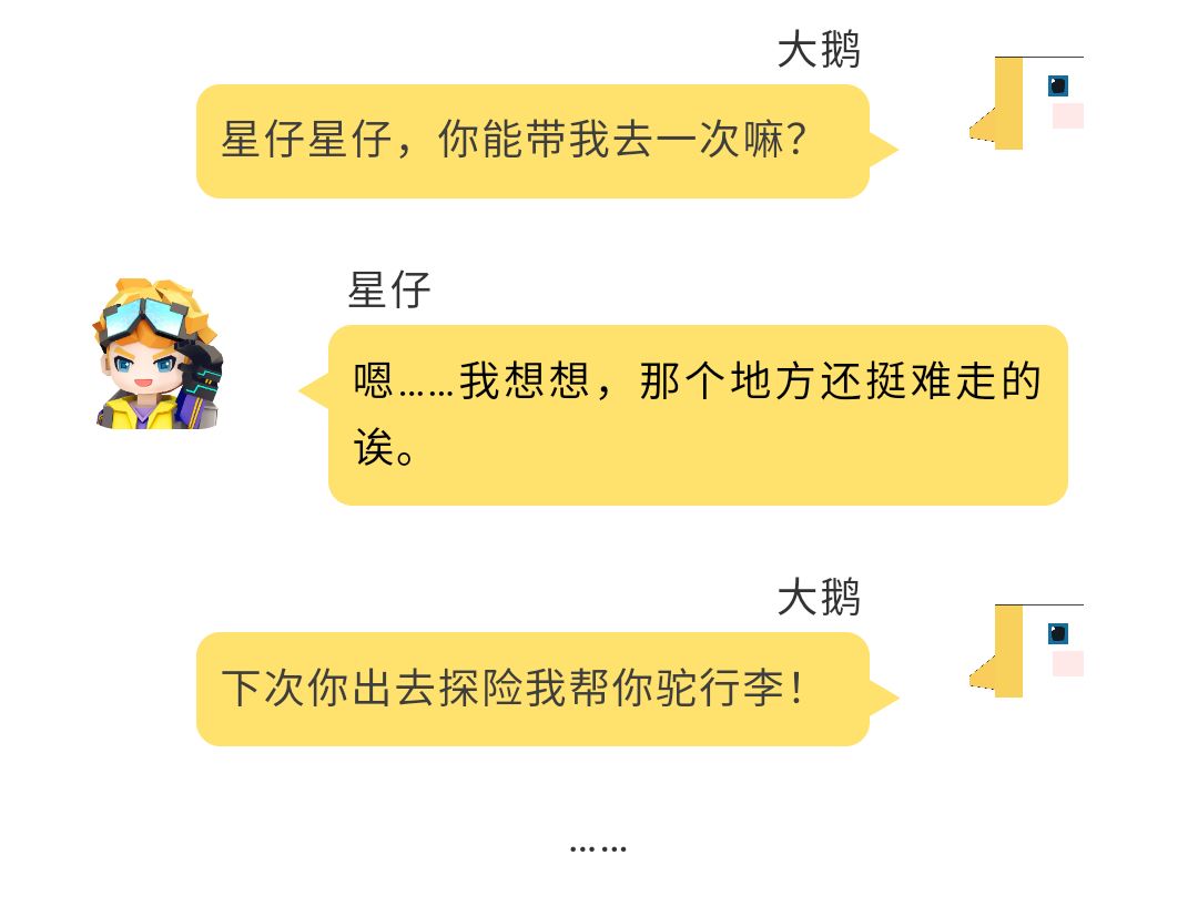 冒险家们下午好,我是创造家博特! 话说星球经常有一些朋友 通过邮件给我寄信、送一些礼物 看着这些邮件我常常在想 它们到底是怎么被送到我家的呢? 平时也完全没见到过邮递员…… 所以我对这件事做了三个猜想 请冒险家们帮我看看哪一种更有可能! 邮件是怎么被寄到家的? 大鹅兼职邮递鹅 你们觉得,有没有可能是大鹅?说起来,大鹅每天早上都会睡懒觉 而且好像一直都很累的样子 应该是大鹅为了赚外快 每天晚上都兼职
