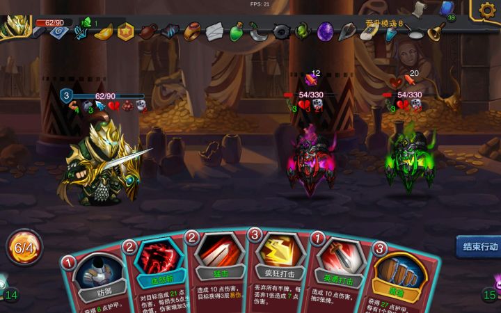 这游戏现在应该没有太多人玩了,但是还是发表一下我的套路吧:(基于困难21)1、这个游戏第一章是最难的,如何渡过第一章基本就通关、除非太过脸黑。2、卡组:必拿万配牌:断筋(遇到必拿、遇到复制和升级必首选)、盾墙,坚定意志和忘却疼痛选用一张,断筋是神牌没有之一没有异议。3、天赋:首选加能量,第一章boss后遇到束缚之链必拿(你有多小机会一回合出多过6个牌?)第二邪能火炬,其他天赋看流派。4、套