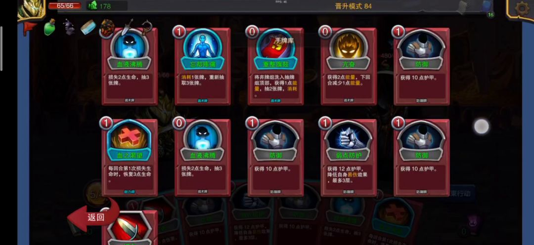 晋级40之前前期猥琐发育少打boos一般都能凑齐,拿多抽一张卡的装备,亢奋是核心牌,其他抽卡的牌为次核心牌(任何抽两张以及以上的都可以)抽卡牌要注意耗费别没等抽出亢奋就没能量了,先升核心牌,升完以后升初始防御牌攻击牌能删除就删除除了这些不拿