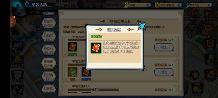 哈喽各位上仙小伙伴们大家好呀,本人作为从新手艰难走到老油条的玩家,会着重为可可爱爱的萌新玩家们贡献自己这一路来所遇到的那些坑以及注意要点,这些坑往往不经意间就会踩到,有的坑是足以让轻氪玩家甚至氪金大佬们“汽油“的存在。接下来给大家介绍今天刚出的盲盒活动。小编可以这样说,感觉今天是最值的盲盒活动,有想快速提升战力的小伙伴在理性消费的前提下一定不要错过哦,小编也没忍住剁手!!!5555~接下来让