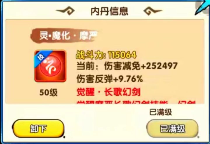 哈喽各位上仙小伙伴们大家好呀,今天给小伙伴们带来的就是橙宠专属内丹。修真红宠仙道轻水、仙道糖宝、仙道南弦月,橙宠阡陌老师、白子画、摩严、无垢、年兽、杀阡陌、檀梵都有各自专属内丹,专属内丹觉醒伙伴技能。今天我们来了解: 白子画、摩严、无垢、年兽、杀阡陌、檀梵的专属内丹如何觉醒伙伴技能。摩严专属内丹:灵.魔化.摩严 战斗力:115064当前:伤害减免+252497,伤害反弹+9.76%觉醒.