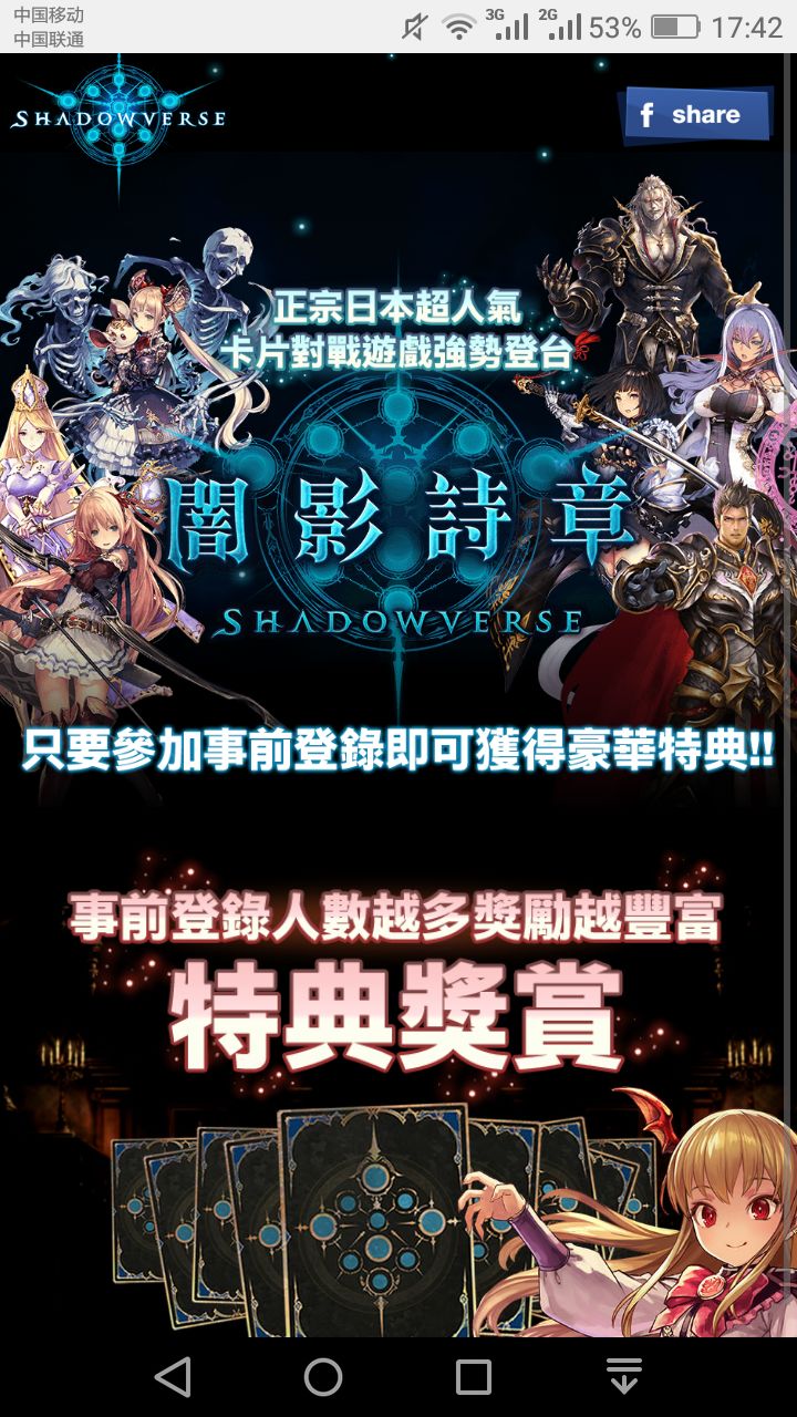 今日shadowverse台湾繁体中文版事前登录来袭!