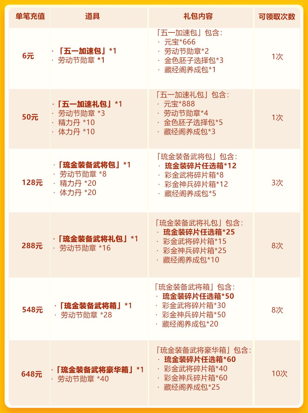 劳动节欢庆第三轮:琉金装备首发+彩 金武将