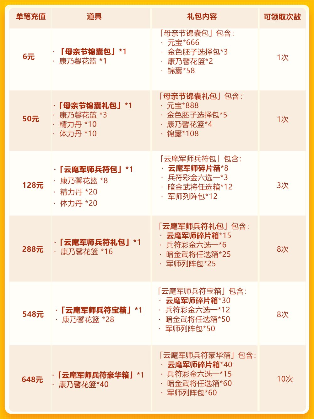 母亲节欢庆第一轮:云麾军师首发+彩 金兵符