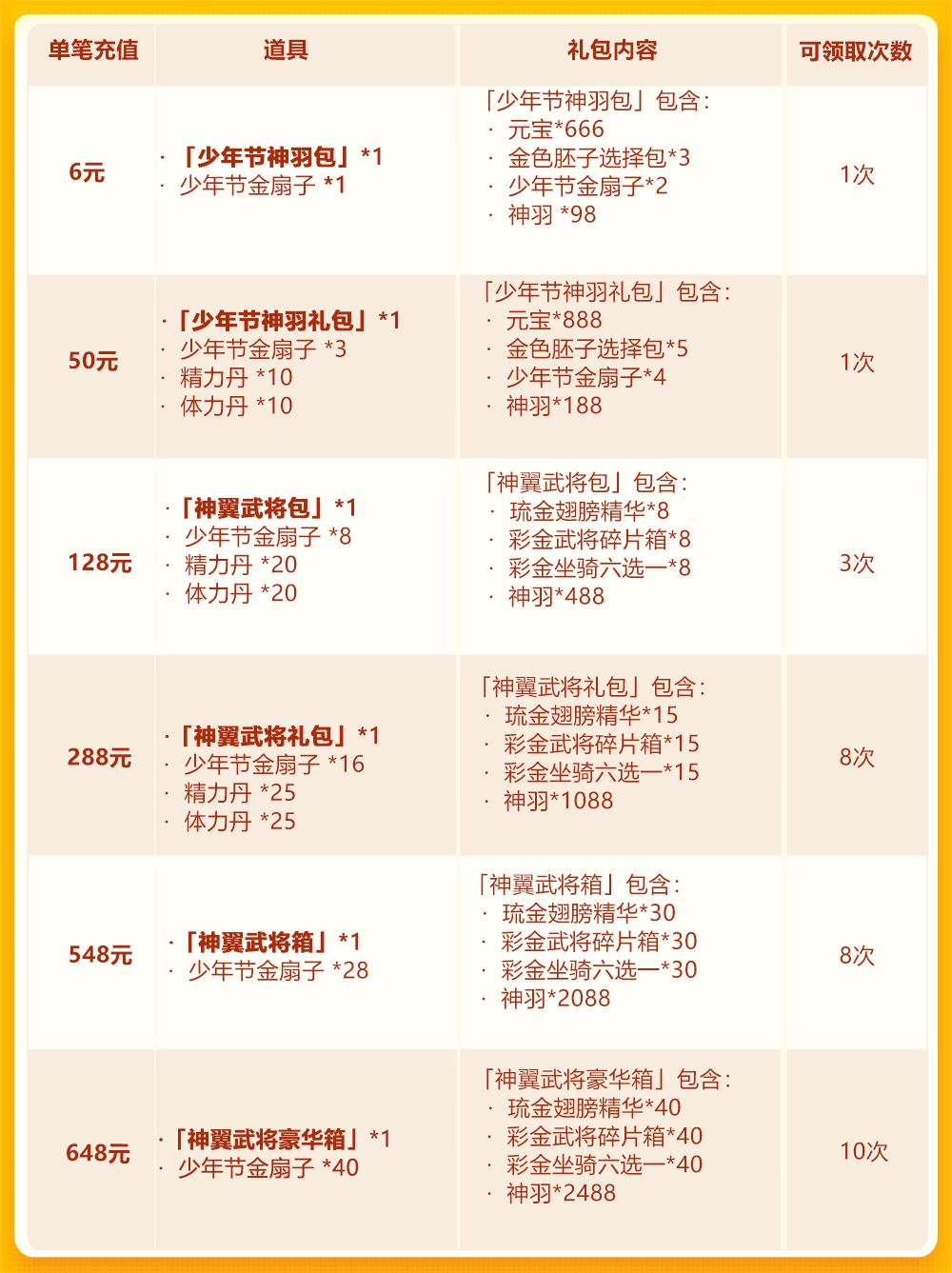 少年节欢庆第二轮:琉金神翼+彩 金武将