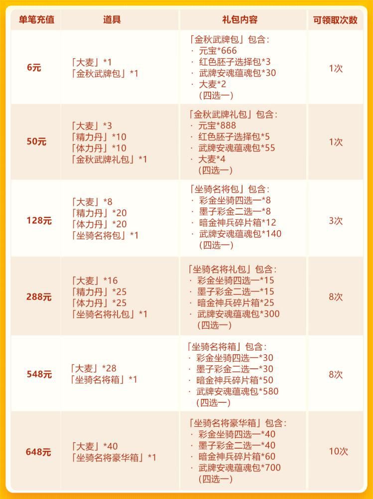 金秋欢庆第二轮:彩 金坐骑+彩 金名将