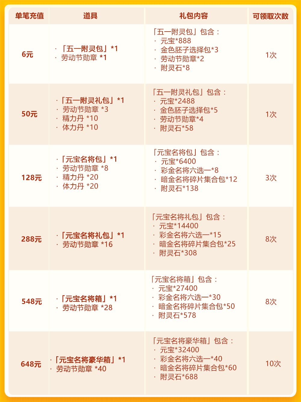 劳动节欢庆第五轮:琉金兵符+琉金武将