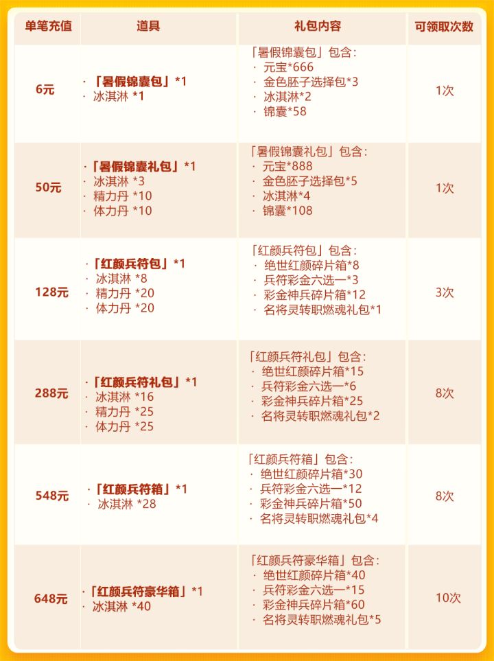 亲爱的少年们:转眼2020年已经过了一半啦~步入7月,暑期欢庆来袭,活动丰富、福利多多,且听小乔娓娓道来——本期活动,绝世红颜再临三国,少年们单笔充值指定金额,即可获得绝世红颜碎片箱、兵符彩 金六选一等资源;彩 金战宠限时获取就在超值单充;周基金火热上线,彩 金名将六选一等丰厚好礼加入;更有超值返利,参与即可获得终极大奖!活动时间:2020年7月1日0:00~2020年7月4日0:00活动