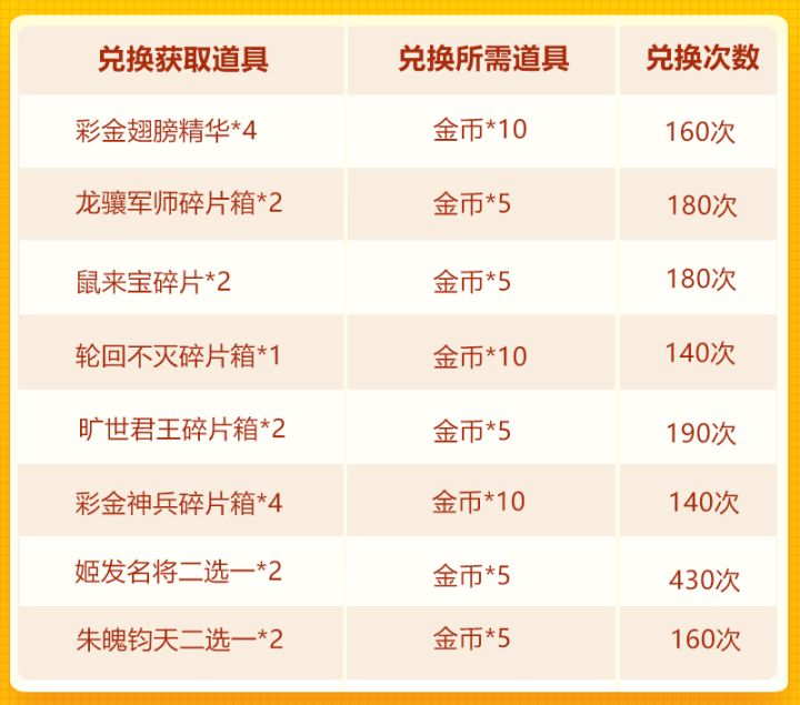 亲爱的少年们:欢乐时间到!本期抽奖有龙骧军师碎片箱、鼠来宝碎片、彩 金神翼精华等珍贵道具加入奖池;每日单充即可获取彩 金翅膀精华、巾帼须眉碎片箱、暗金翅膀精华等道具。丰厚道具唾手可得,不要错过噢~活动时间:2020年7月7日00:00~2020年7月10日00:00活动范围:服务器开启满7天的服均可参加(开服≥8天)——欢乐抽奖——活动一、欢乐抽奖限时开启本期欢乐抽奖奖励兑换时间: