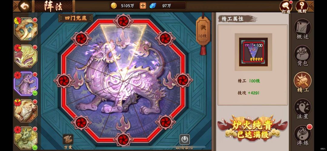 #攻略分享#三国2之阵法三件宝 三国2中阵法分为:一字长蛇、双龙出水、天地三才、四门兜底、五虎群羊、六丁六甲、北斗七星。阵法的培养主要分为精工、注星及淬炼,依次对应的材料为霜铁、星水及炼铁。材料获取可以通过封魔副本掉落、阵法分解及折扣商店元宝获取(白嫖玩家跳过此项)。 阵法培养顺序优先级:七星>三才、六甲>四门>五虎>双龙>长蛇,精工、注星、淬炼都有成长大师,建议按照培养顺序同步提升各阵法的成