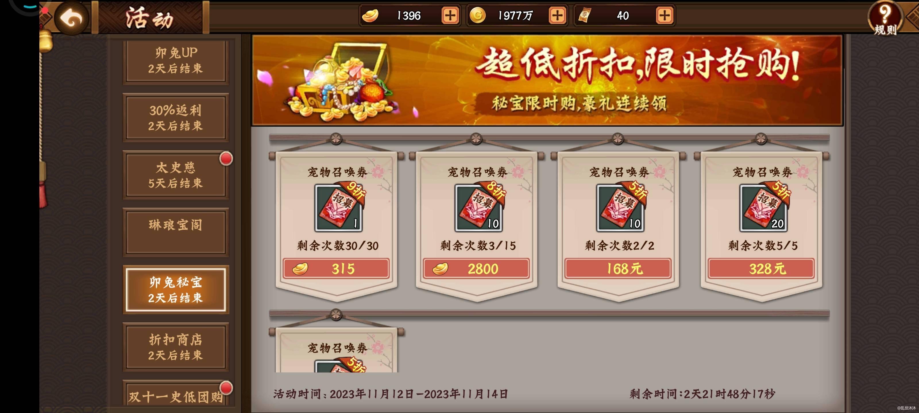 铁打的神剑,流水的武将,我觉得作为白嫖党来说,武将一罐即可,没必要追求三罐,毕竟花元宝的地方太多了,可以把元宝集中在神剑上,武将也可以集中在年将上,比较一个三罐武将耗资至少五六万元宝,小半年不吃不喝!其次宠物也必不可少,毕竟宠物家园属性是可以叠加的,平常白嫖和打折购买即可!
