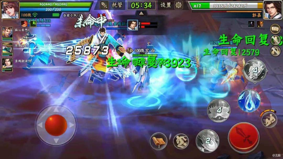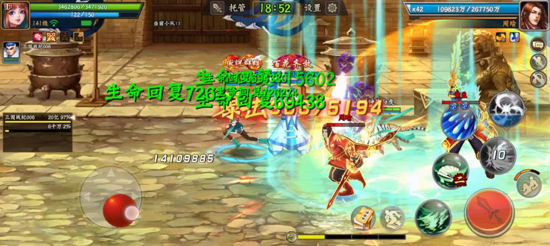 再说说无双小乔在PVE玩法中的一些妙用。在封魔玩法中,和蔡文姬相比,无双小乔主要是缺少减伤机制,相对而言,对团队的保命能力没有蔡文姬强,但蔡文姬的治疗量以及对团队输出提升的效果却更明显,所以,如果是打110这样的高等级封魔,大号本身能站得住不容易被BOSS秒杀的话,小号带个无双小乔,对团队的辅助提升效果还是很明显的。