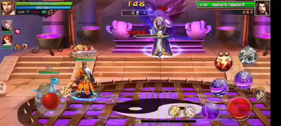 诸葛难度5是真不好打,boss开了天师符根本近不了身,曝气无敌时间缩短后更难了,有时候太清接神仙笔都按不出来人就没了😆。打的时候需要注意不能靠近boss,要利用技能的Y轴来输出,另外需要注意快速攒怒气,中间诸葛和周瑜一样需要用大招打断boss的引导技能。至于道具可以带个青囊书增加容错率。 配置为:战力1650万,三冠无双郭嘉配三冠卯兔,五冠荀彧配一冠白虎,四星鲁肃配四星龙龟。