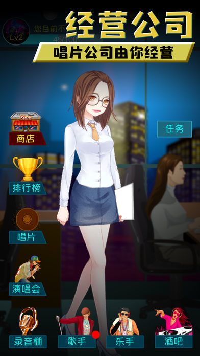 本游戏是一款模拟经营唱片公司,培养明星歌手的手游,趣闻十足!
