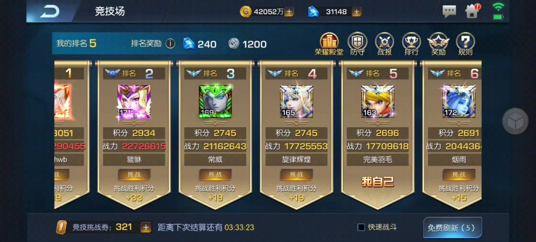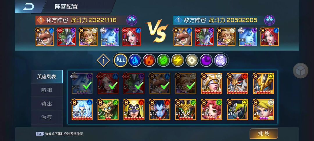 战力相差不大,我没有上公主,用的时光,可能星级高了一点,以后要努力养公主了!