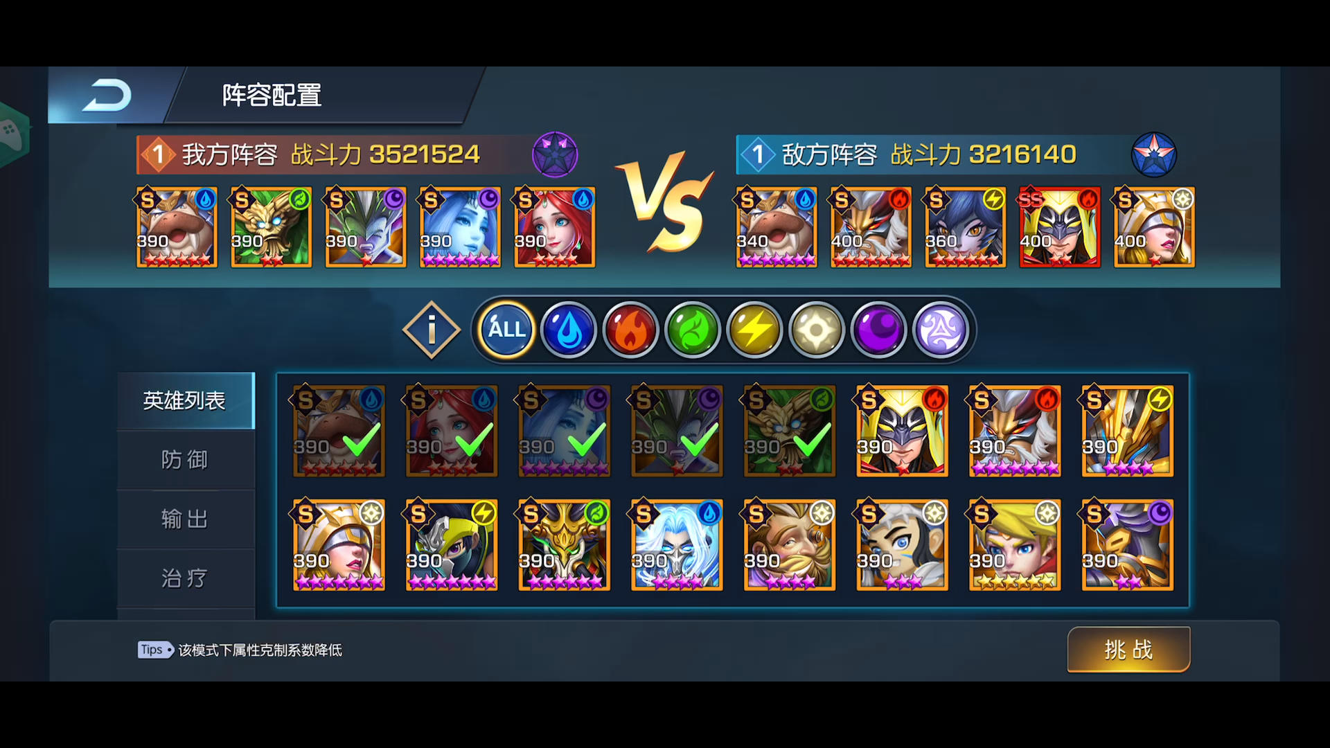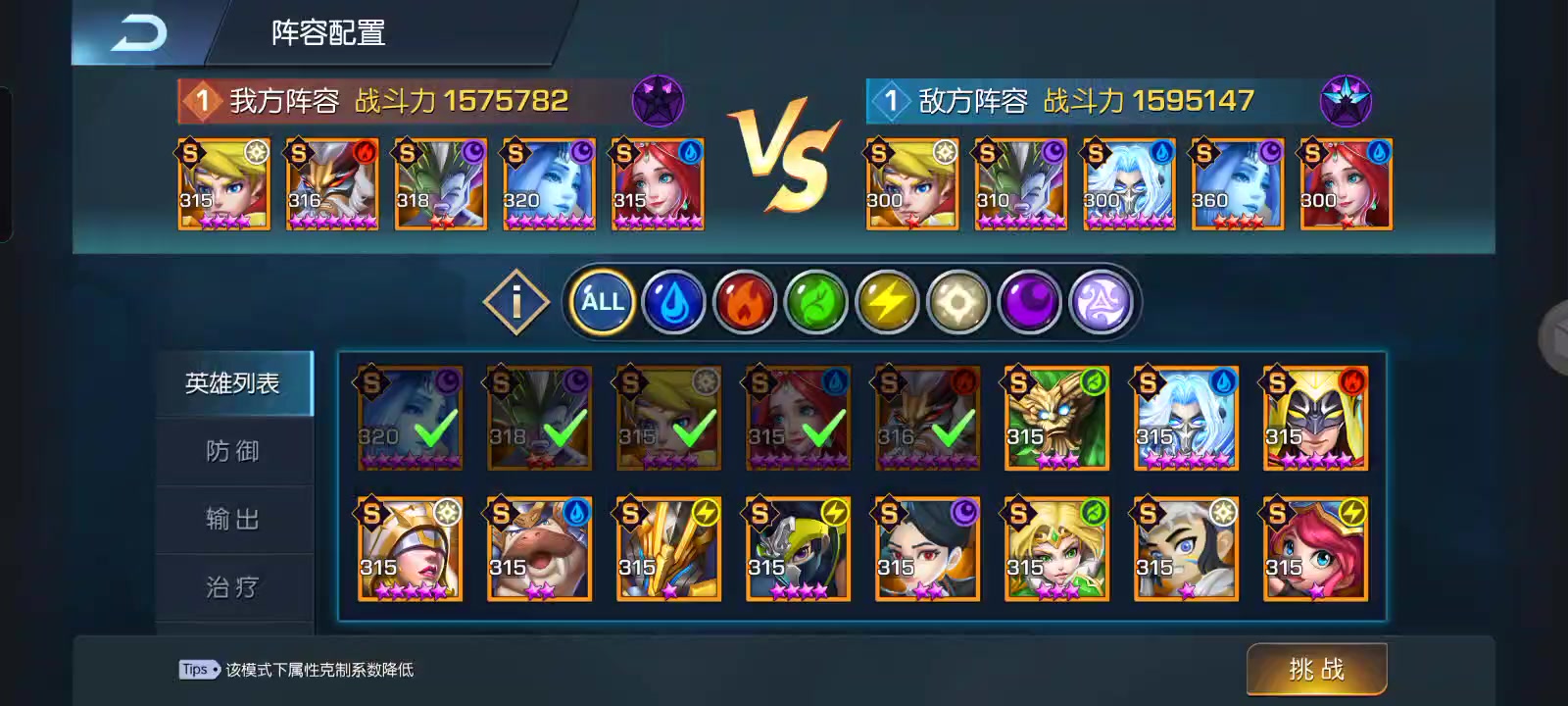 潮汐71服 禁军教头·零冲 双方阵容我方雷盾、水奶、公主、恶魔、剑豪。 对方大树,雷奶、恶魔、剑豪、幽魂猎手。 看阵容都有输出、控制、回复。 对方英雄星级都比我高,战力高出30万,2切后排又有控制,前排有大树,所以对我方水奶和而公主造成极大的危险。 开局对方多名英雄被我方眩晕,恶魔也成功击杀对方雷奶,是对方断了回复。 而对方恶魔被我方剑豪牵制并被击杀,幽魂猎手虽成功冰冻和潜入我方后排,对公主差点造