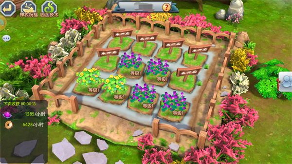 【天书世界】共有两个区域,花圃和许愿树。好友之间可以互相帮助,共同成长。【花圃】1.花圃中有12个地块可以种植;2.初始只能使用3块土地,27级开放第4块土地,之后每10级开放1块土地;3.VIP可以开启更多土地;4.土地可以升级,从而提高产量;5.土地初期可以种植铜钱和仙魄,主角等级提高后,可以解锁更多种类;6.可以随时更换土地中的植物;7.通过研究花圃中的各项功能,可以极大的