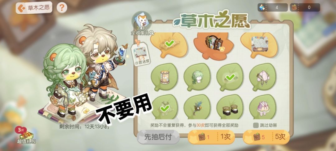 突然发现这游戏抽卡莫名的多 所以做个归纳(闲的) 1p常驻钻锤池(房子家具分开各有各的道具60一抽可兑换一抽十券) 补两模式一样但不能兑换的金币池和爱心池 2p常驻友情池(服装家具混池100友情一抽) 3p限定大转盘 暂无复刻(服装家具道具混池80一抽可兑换一抽十券 唯一可抽房子座椅印记的池子,也是唯一有限定辉月服的池) 4p限定池(服装家具混池60一抽可兑换一抽十券有限时奖励 卡池复刻积分道具不