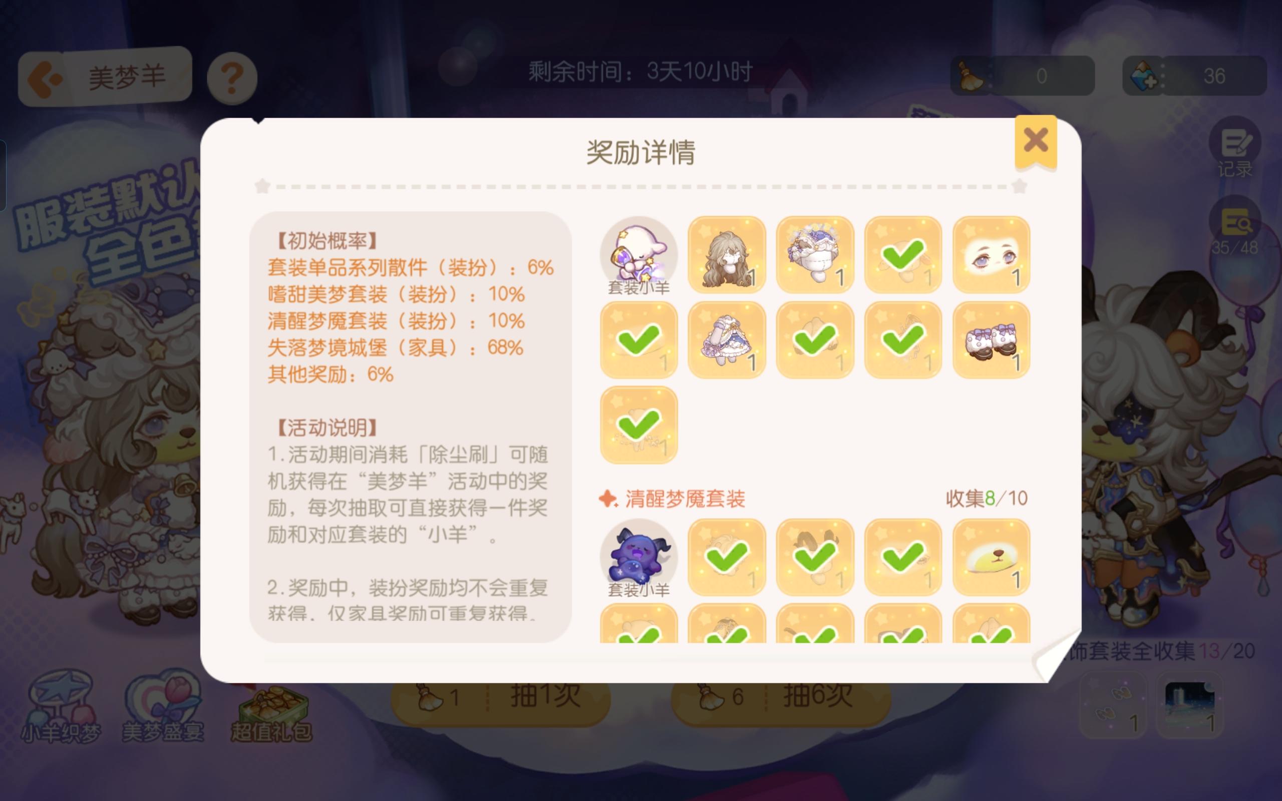 嘘,美梦正在生成中……12月12日「美梦羊」限时主题活动全新开启!与小羊共赴一场虚幻世界的盛宴。⭐活动时间⭐12月12日5:00-2026年1月1日23:59⭐活动奖励⭐参与「美梦羊」活动可获得活动限定奖励,奖励包括晨星装扮套装「嗜甜美梦套装」「清醒梦魇套装」,装扮散件「安睡好梦小羊」「云端梦游」「扭曲时空」「云端电话亭」,主题限定「失落梦境」系列家具,此外还有称号「甜梦小熊」、头像框「绵