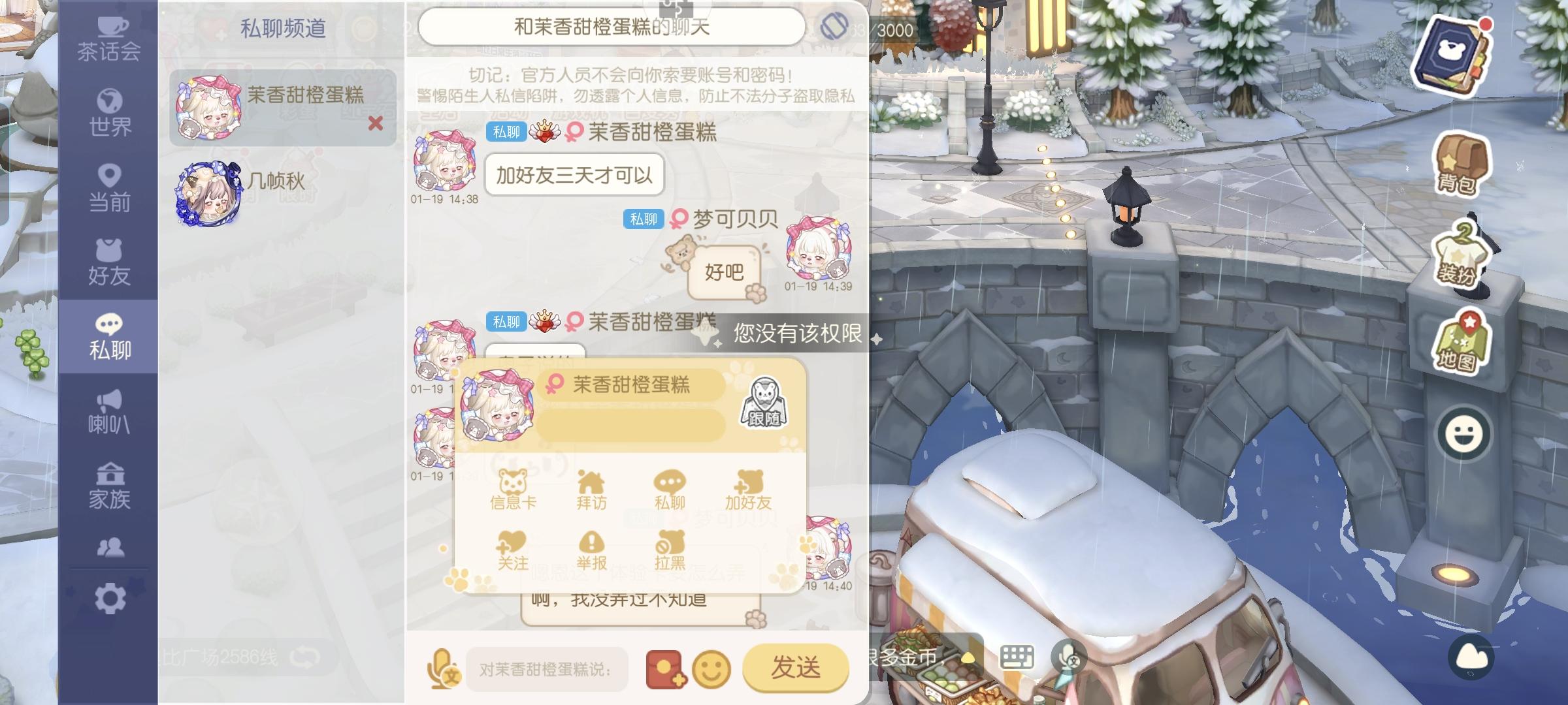 大家注意⚠️别被骗了!!!事情起因 世界有人在喊4份钻享可换红宝石一日体验卡(PS因为当时没有5口的还特意给加成了5份4口的真是应了我称号了“小丑”) 因为是微微氪金玩家没体验过红宝石 正好是碰到了就想看看红宝石玩家是啥样的咱也体验下这可倒好今天一上线发现好友玩家找不到她了,为什么是今天去找她呢因为这个骗子说要加好友3天才可以赠送这个我倒是没有怀疑 找了一圈没在好友玩家列表硬是没找到一下子就反应